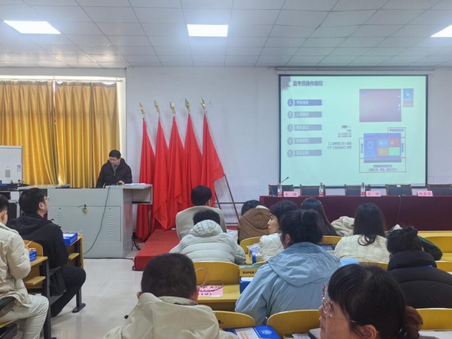 考前,副校长赵金安到考场视察工作,了解考试进行情况,明确要求确保各工作环节均须有效落实。