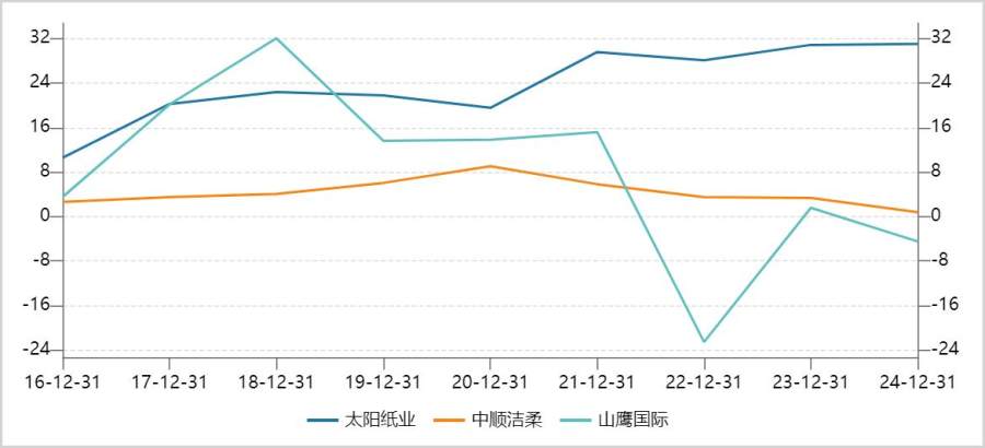 而作为A股造纸板块市值最大龙头,太阳纸业在本轮周期中股价调整相对较小,且更早开始反弹。这与公司业绩持续优于行业平均水平密切相关。在2021-2024年纸价整体下行阶段,太阳纸业年均盈利仍保持在30亿元左右,而多家同行则陷入了利润大幅下滑甚至亏损的境地。其核心优势,正是建立在低成本控制能力之上。