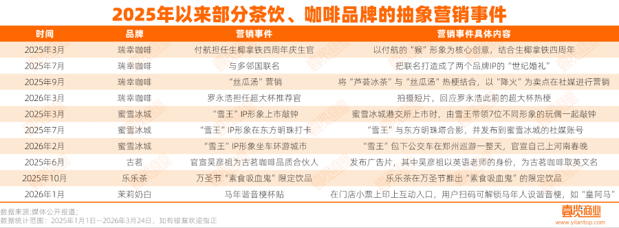 瑞幸此次操作并非孤例。这种以幽默为底色的“抽象”营销方式,正在成为茶咖行业的惯用手法。