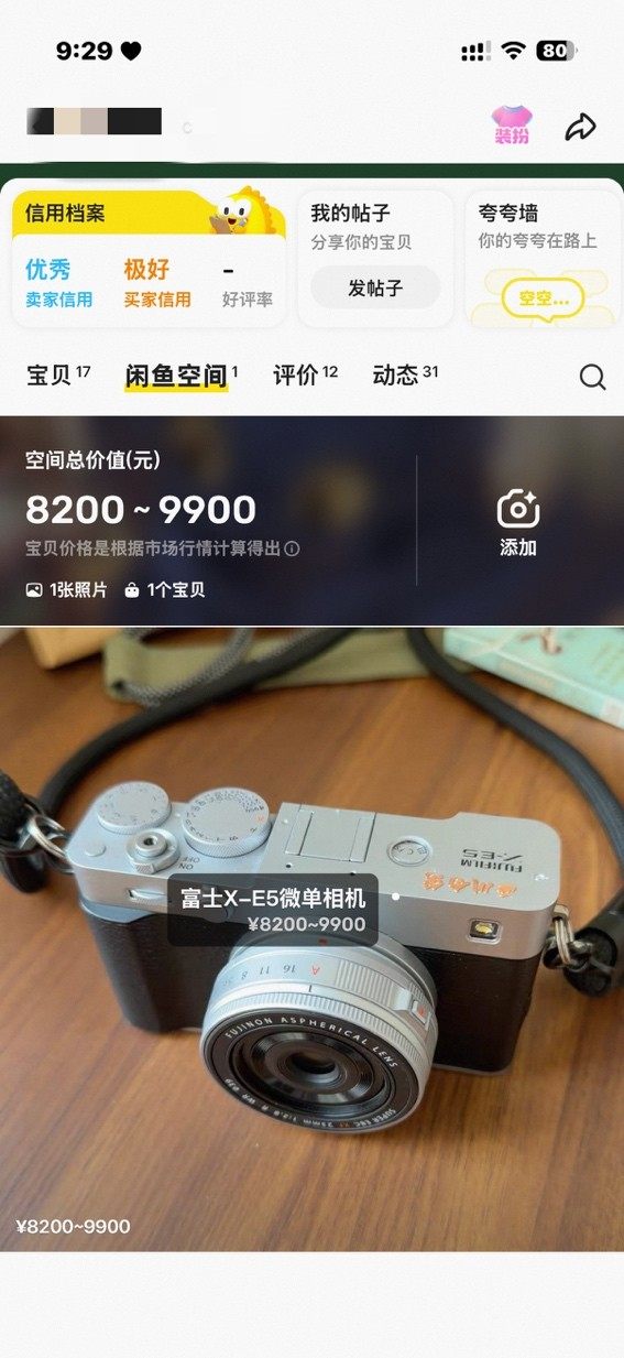 就在刚才,我用闲鱼AI相机拍了现在书桌上的富士XE5微单套机,闲鱼AI相机在识别成色后,给出最高9900元的价格。同一款产品,在专业的相机二道贩子手里,只能给出8500的价格。