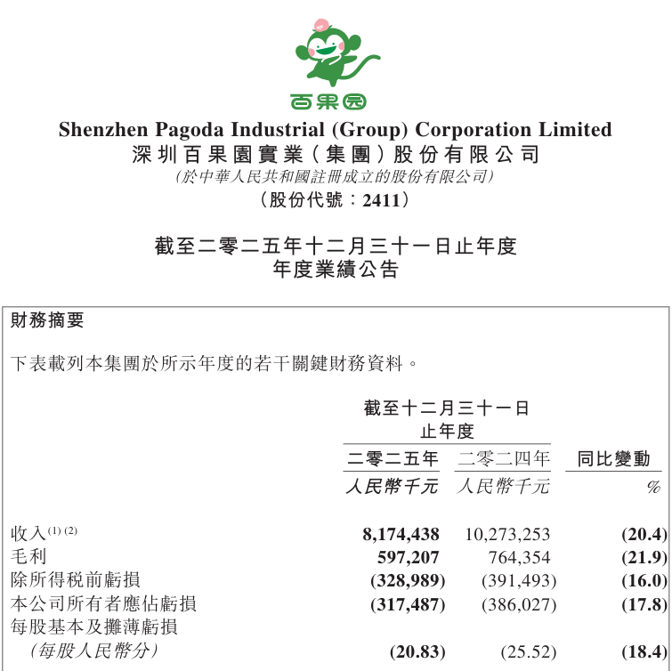 近日,作为“中国水果连锁零售第一股”的百果园披露了2025年全年业绩公告。