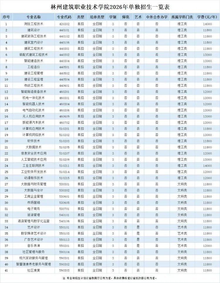 林州建筑职业技术学院2026年单招招生章程