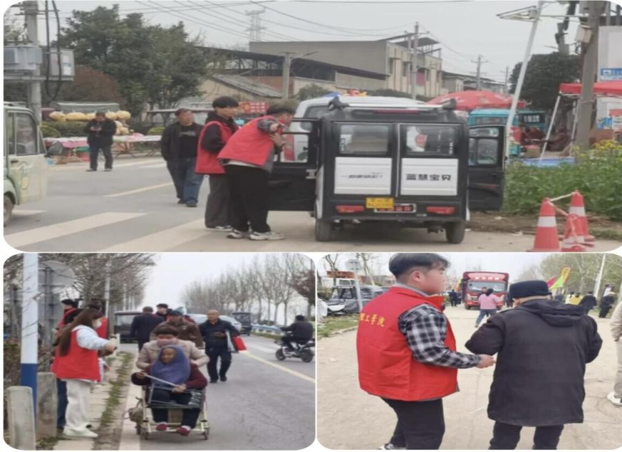 3月23日,学院组织数十名志愿者走进观音寺十里铺村庙会,开展车辆疏导、秩序维护、老年人帮扶等志愿服务。志愿者身着红色志愿马甲,分工协作、各司其职,紧盯车流动态,耐心引导市民有序停放三轮车、私家车,有效缓解周边交通拥堵;面对市民咨询热情回应,以细致服务保障通行顺畅。针对行动不便的老年群体,志愿者发挥护理专业优势,主动搀扶老人、协助休息、指引路线,结合专业知识普及出行安全常识,用贴心服务为老人保驾护航。