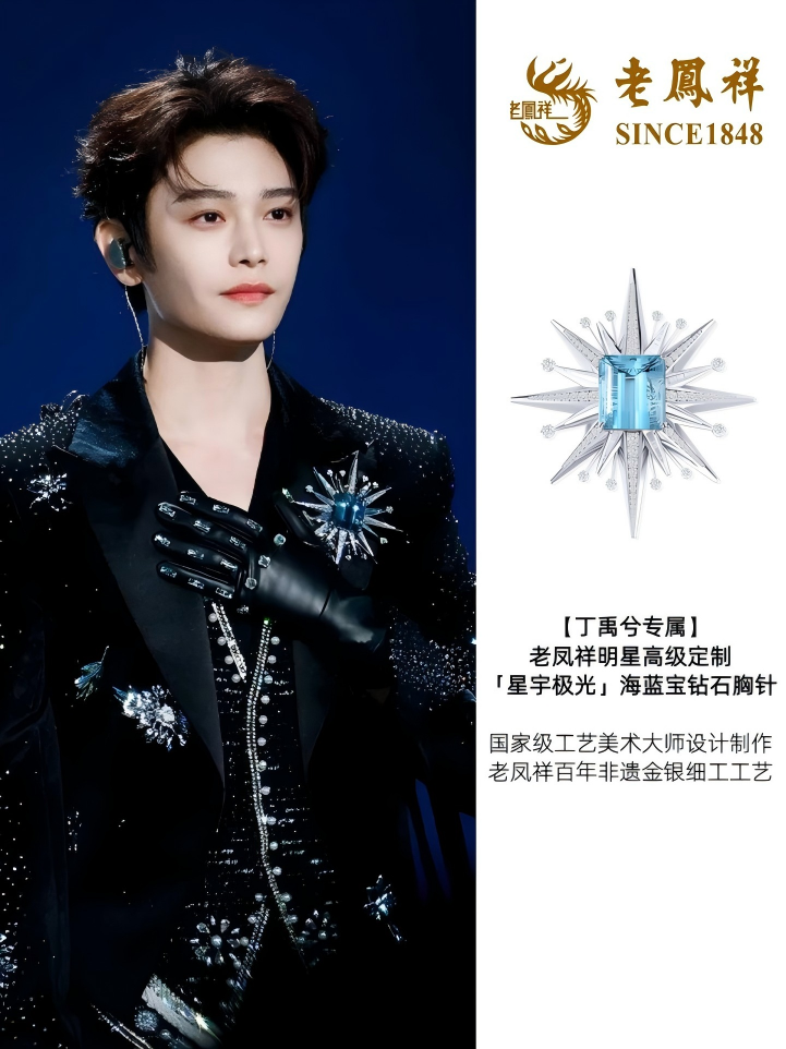 QQ 音乐超级巅峰之夜上,斩获“巅峰流行男歌手”的丁禹兮佩戴老凤祥专属高定胸针“星宇极光” 再度刷屏社交场。这枚融合海蓝宝、钻石与非遗金银细工的配饰,不仅让艺人造型出圈,更将百年珠宝品牌老凤祥推至行业讨论中心。