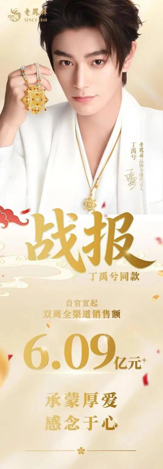而老凤祥则借助丁禹兮全域合作破局,交出了双周同款销售额破6.09亿元、单日破7500万元的成绩单。