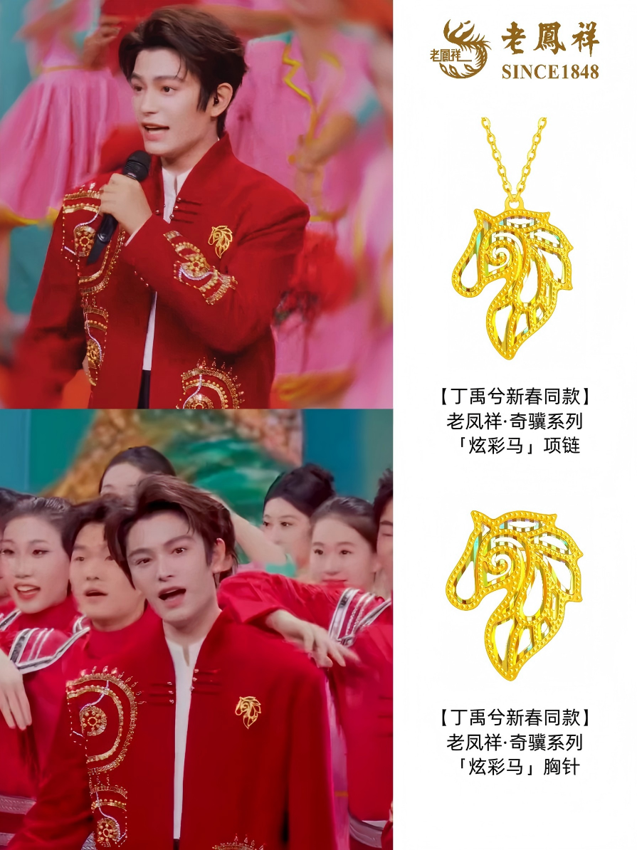 高定胸针早已是丁禹兮的标志性符号。早在今年春晚,他佩戴的「炫彩马」「凤舞九天」胸针便凭借精致做工与中式美学刷屏出圈,而这些堪比高奢的重磅配饰,均出自老凤祥。