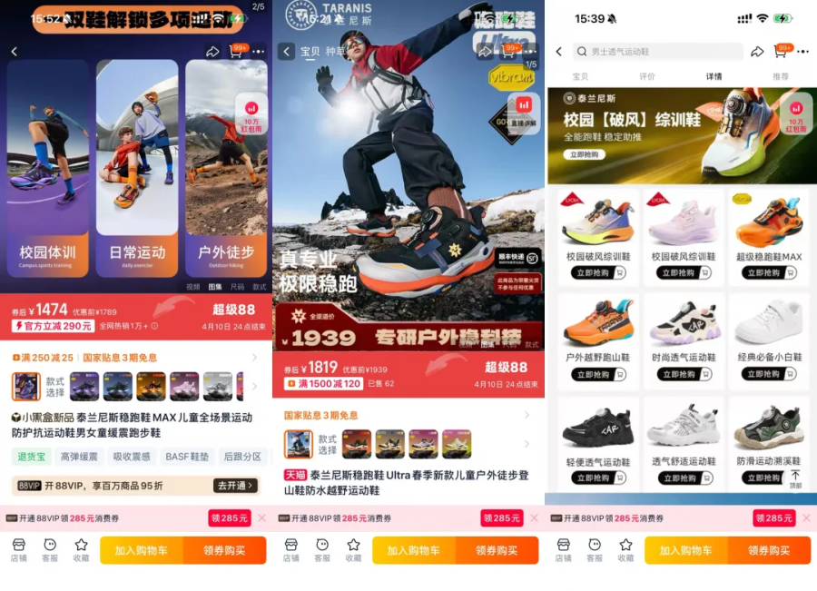 除了将产品越做越高端,泰兰尼斯还在悄然拓展产品矩阵与应用场景。在泰兰尼斯线下门店,记者注意到其店内海报的slogan已换成“上学就穿稳跑鞋,更懂校园运动保护”。去年下半年以来,泰兰尼斯的产品已拓展至综训体测、户外跑山等场景。此外,稳跑鞋款式均提供成人尺码,有客服表示很多客人会买来当亲子装穿。