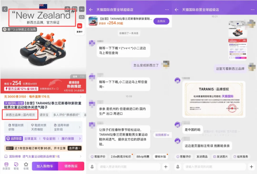 对于不甚了解的消费者而言,这很难说不是一种误导。对此平台客服表示,泰兰尼斯是中国品牌,此系页面标注错误。该宣传失误何时更正,后续值得关注。