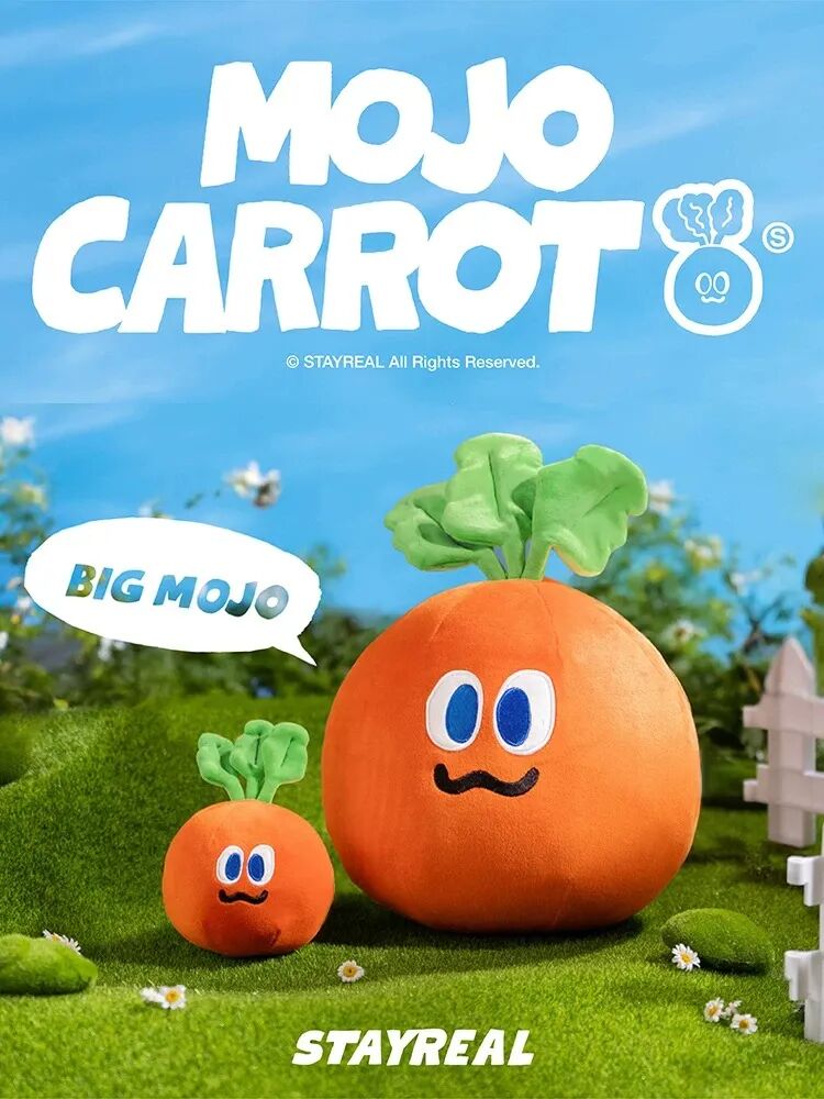 五月天的“卜卜”全名为“魔魔胡胡胡萝卜”,由主唱阿信与艺术家不二良共同创作,通过潮牌STAYREAL推出。卜卜这一圆润的胡萝卜形象,最早脱胎于阿信和粉丝的趣味互动。2023年,阿信在小红书以官方默认的胡萝卜头像活跃时被粉丝认出,随后阿信便设计了Q版胡萝卜头像,粉丝们迅速跟进,将其变成了社交符号。