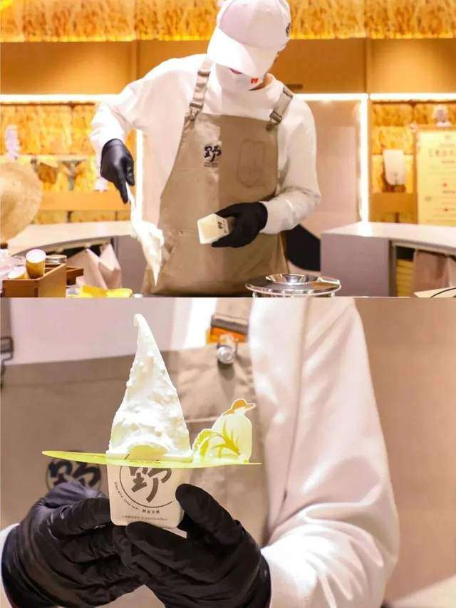 超500平米的双层独栋,提供“焦糖香榧”、“咸奶茶奶皮子”等限定口味,更有冰淇淋蛋糕、咖啡和奶昔等新产品。