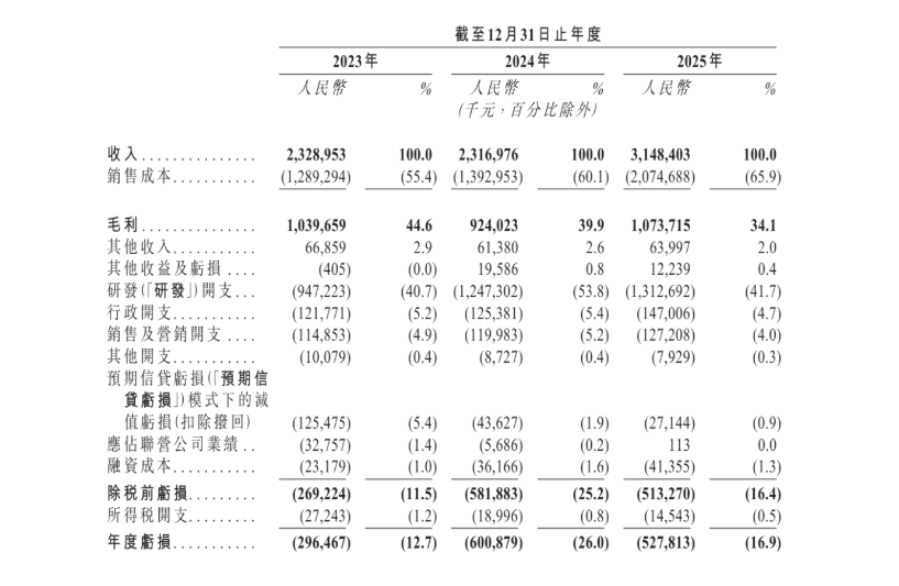 尽管2025年亏损幅度有所收窄,但盈利压力依然存在。毛利率方面,公司毛利率逐年下滑,从2023年的44.6%降至2025年的34.1%,主要受行业竞争加剧、业务结构调整及研发投入增加等因素影响。截至2025年12月31日,公司持有现金及现金等价物20亿元,为后续研发投入和业务拓展提供了一定资金缓冲。