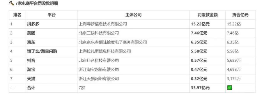 市监总局对7家电商平台“幽灵外卖”系列案行政处罚,罚没款总计35.97亿元,涉事责任人罚款1968.74万元