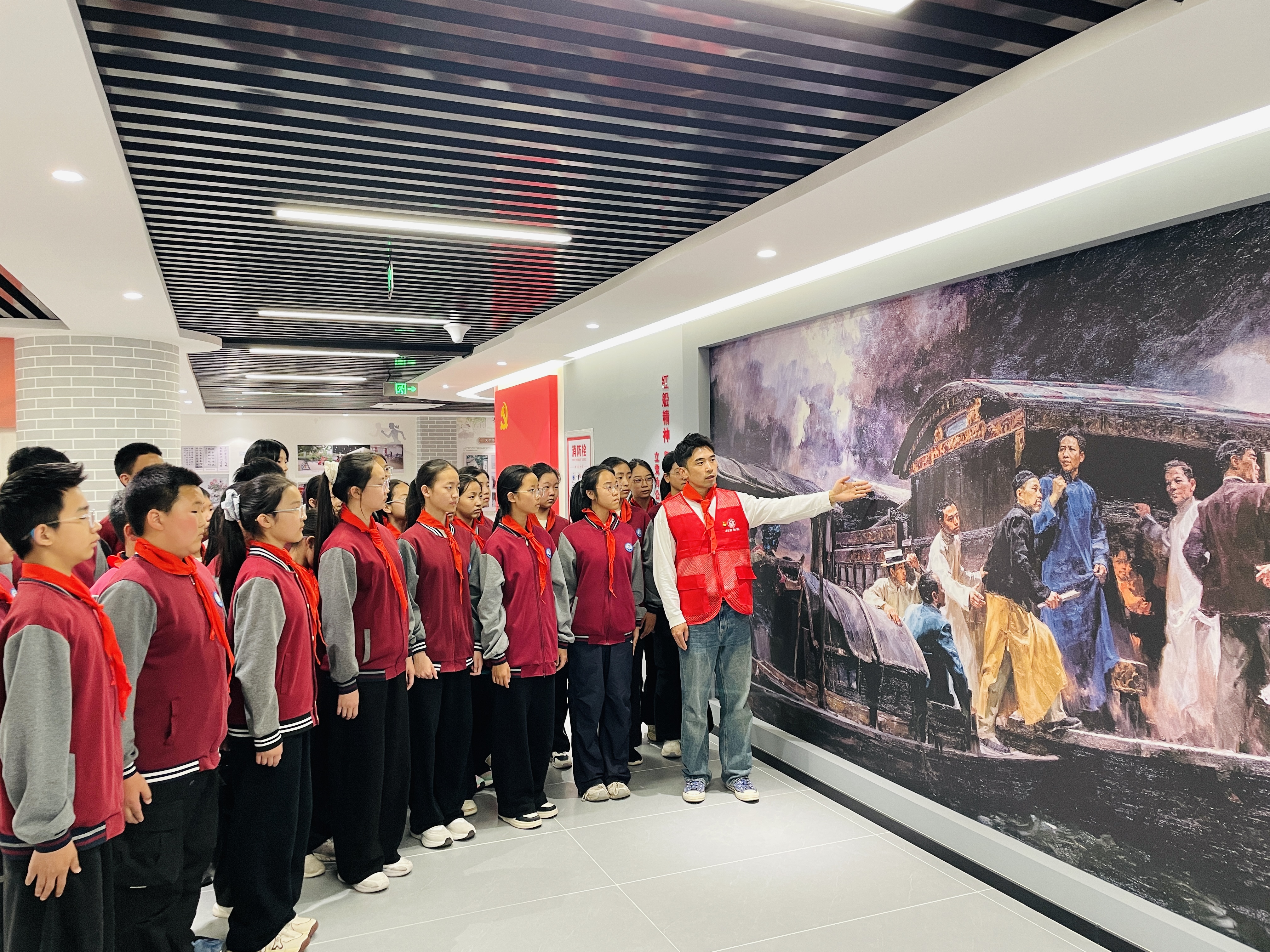 党建搭台,红色宣讲润童心。活动现场,社区党员志愿者化身讲解员,带领同学们有序参观党史馆。一幅幅珍贵历史图片、一段段详实文字资料,清晰展现了中国共产党从艰难求索到发展壮大的光辉历程。讲解员结合红色故事,生动讲述革命先辈为民族独立、人民解放艰苦奋斗的峥嵘岁月,让同学们在聆听中感悟初心使命,在凝视中厚植爱国情怀,红色基因潜移默化融入青春血脉。