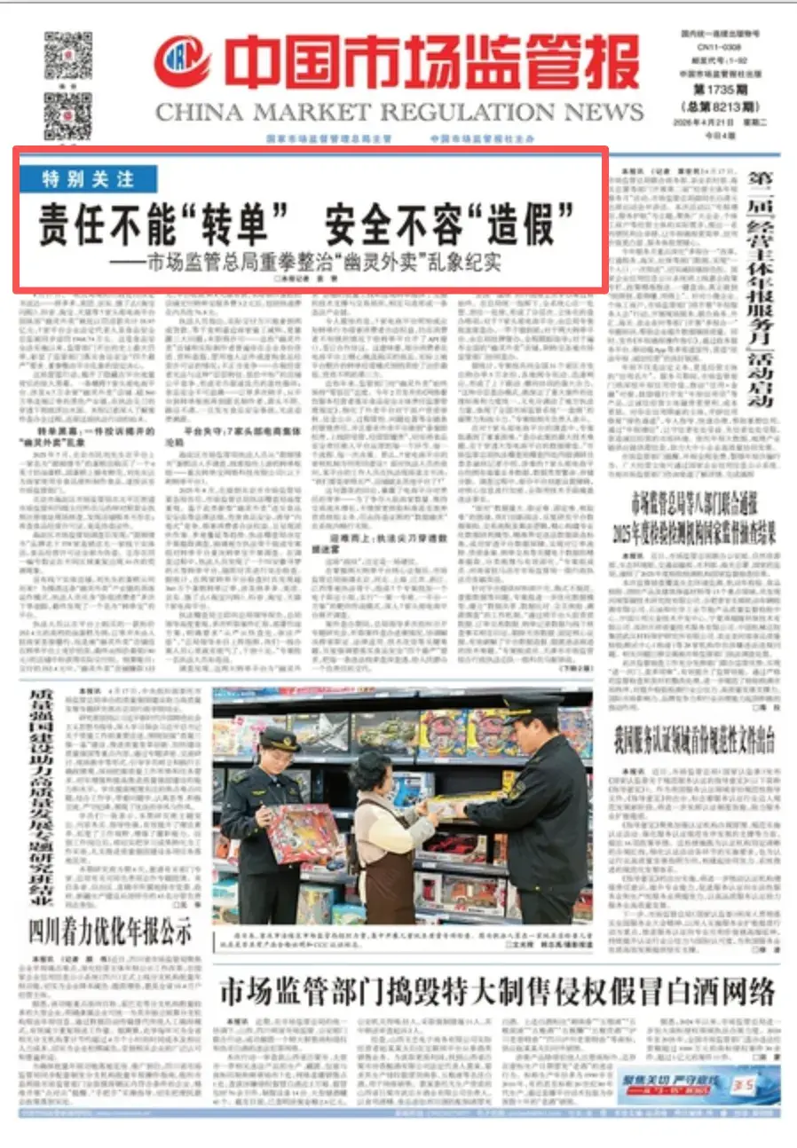 不过,4月21日,国家市场监管总局主管的另一家媒体《中国市场监管报》,在头版头条刊登调查报道,直接点名拼多多“暴力抗法”的诸多细节。