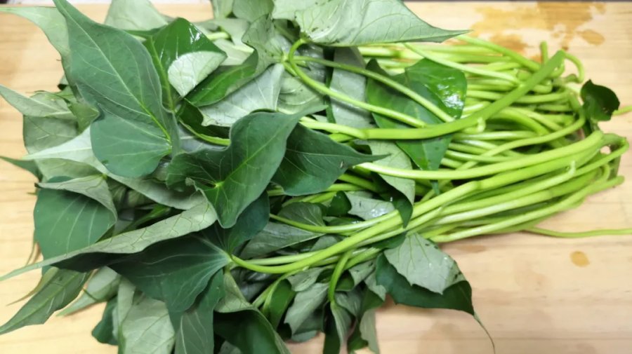 打红薯叶的最佳时节,是在寒露后、下霜前,既不影响红薯长粗长壮,又能使叶子不经霜保持绿亮。