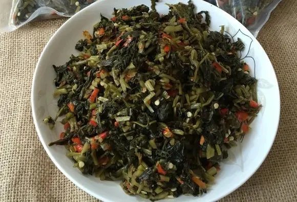 酸红薯叶当馅料,包扁食,蒸包子,算是上等的好吃食。在物质匮乏的老日子里,若是馅中再掺入一些炼过油的油渣儿,那绝对是殷实人家的奢侈,爽口的酸香中,弥漫着醇厚的肉味,吃一口满嘴流油,馋死人。