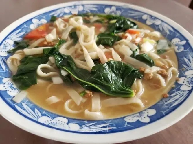 红薯叶的酸爽滑溜,配上手擀面的不软不更,可谓是绝佳搭配,天生一对。