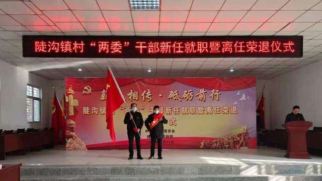 仪式上,隗正军首先进行了致辞。他充分肯定了陡沟镇村“两委”换届工作,并对新任村“两委”干部提出四点希望:一是新任村干部要接好“接力棒”,当好“答卷人”;二是离任干部要“离岗不离心”,当好“示范者”;三是新老干部要共同挑好肩上的“担子”,做到“传承不缺位”;四是乡村两级党组织要夯实主体责任,筑牢乡村振兴“桥头堡”。