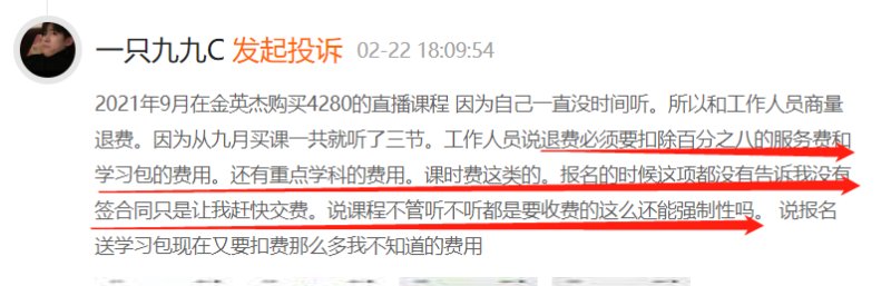 退费难,是学员吐槽金英杰的主要内容。