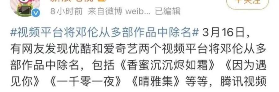 很快,市场就做出了行动,不到一天的时间里,邓论个人代言的品牌方们纷纷宣布解约,关于邓伦的社交媒体直接销号,而各个平台上有关邓伦的影视作品也陆续出现下架情况,即便是有的平台还保留了剧集,但也把邓伦从主演一栏中删去。