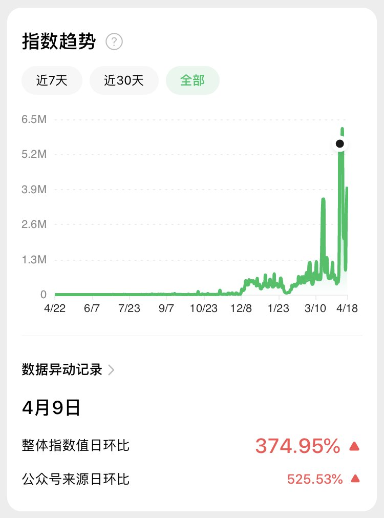 而作为今年紧致提升仪器界的黑马,超声炮则成为市场关注的焦点。微信指数显示,2021年4月至今,超声炮搜索指数一路攀升,其中4月9日,整体指数日环比增长高达374.95%。