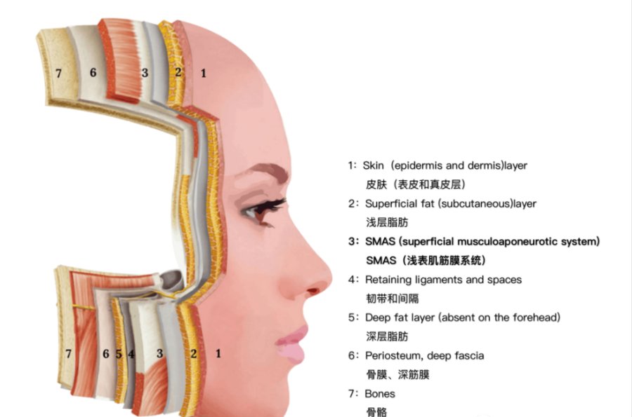 为什么作用到筋膜层,能够达到较好的抗衰效果?人体皮肤可以分为浅表层、真皮层,皮下组织和筋膜层。医美仪器的治疗中,作用在2.0mm深度的真皮层,可使细纹变浅、变短;作用在3.0mm的浅筋膜层,可以收紧皮肤;作用在皮下4.5mm深度的SMAS筋膜层,则可以起到面部提升的效果。