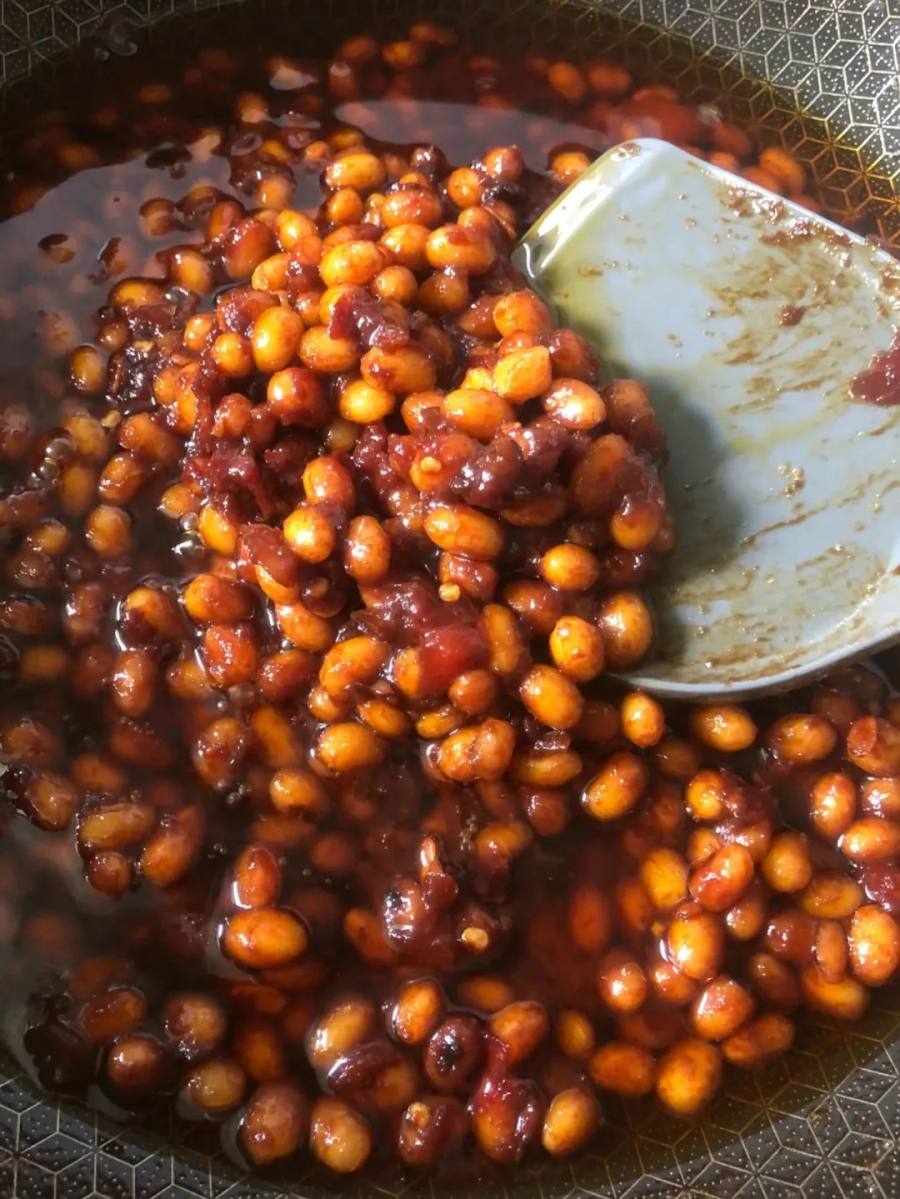 炒制焦香的黄豆、红彤彤的辣椒、辛辣温和的姜丝等混合,做好之后鲜、香、辣、爽。