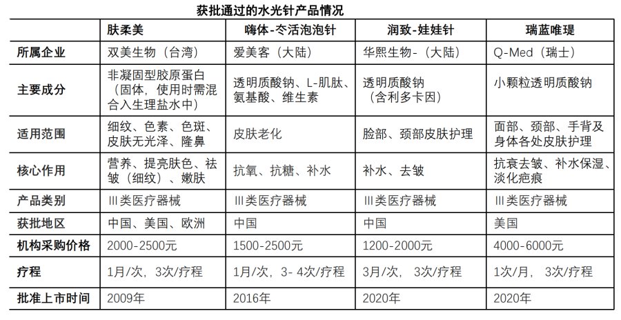 一直以来,水光针类产品为医美领域的模糊地带,市场存在大量的水光针产品,但缺乏对该类产品的定义和具体监管方法。2022 年 3 月,国家药监局发布关于调整《医疗器械分类目录》部分内容的公告。