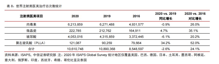 全球医美用肉毒素注射诊疗量保持稳健增速。