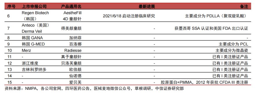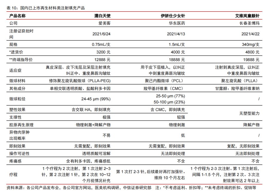 产品端:监管机构一方面加强对不合规产品查处、限制其销售,一方面对新产品、新材料持积极的态度,2021 年是医美生物材料三类医疗器械注册证获批最多的一年。