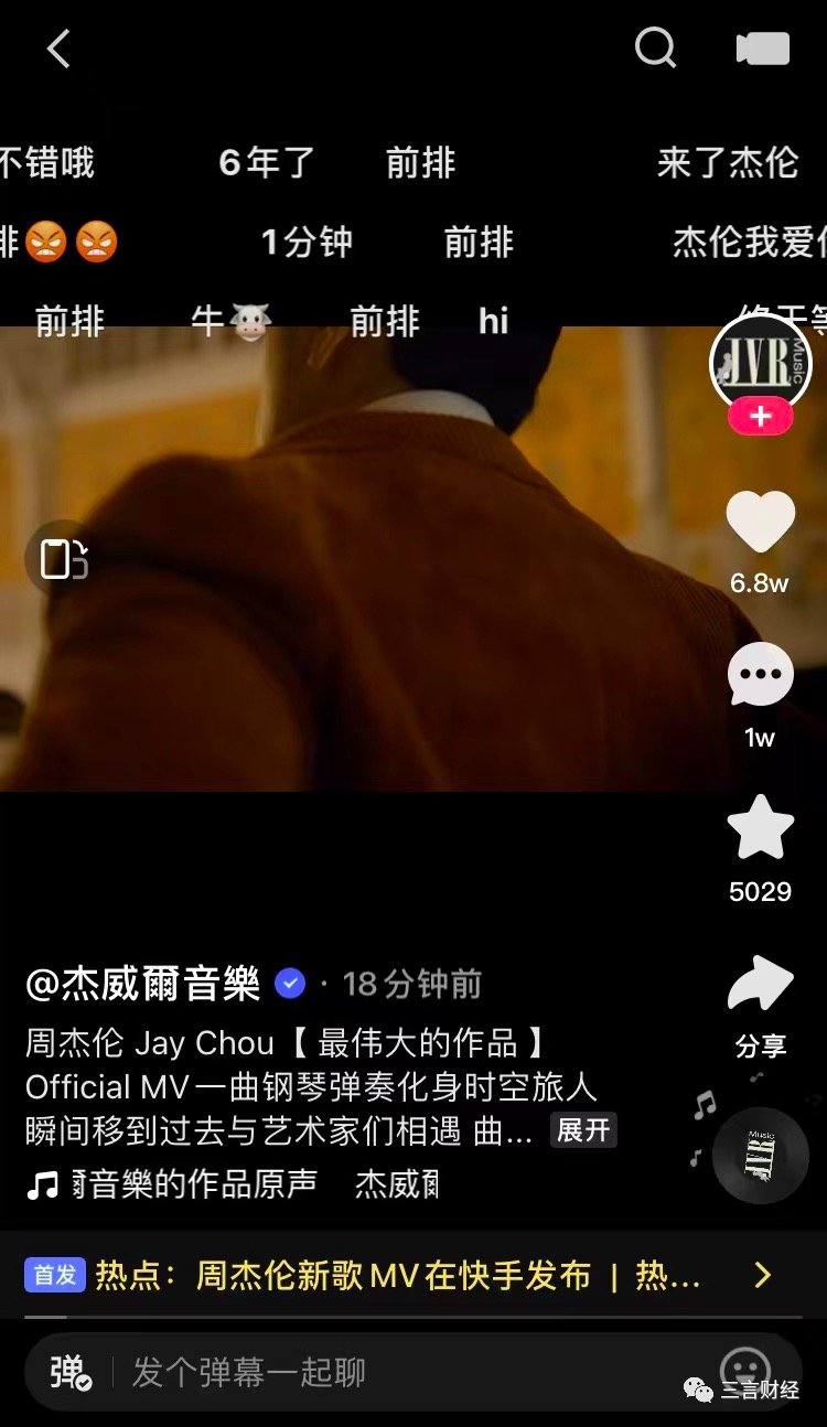 快手也如约发布,并配文“周杰伦新歌全网首发 独家互动只在快手”。