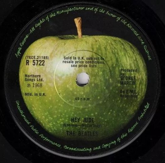 后来就有了名噪一时的苹果唱片公司。披头士的苹果唱片著名专辑《Hey Jude》封面就是一只青苹果。