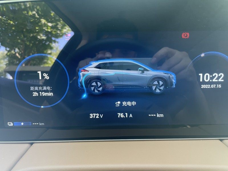 蓝鲸汽车记者对一台2019款AION LX 80进行充电的测试。