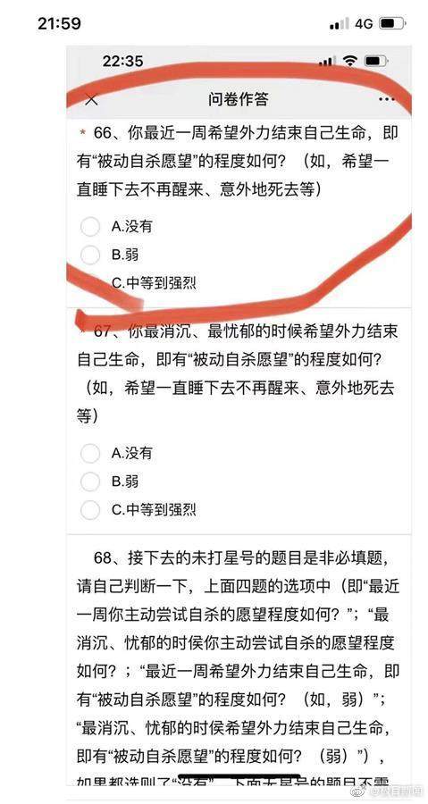 “最近一周,为了自杀,你的准备行动完成得怎么样?”11月18日,有网传消息称,上海长宁区多所中小学的调查问卷中,包含诸多与自杀相关的题目,其中包括上述问题。这类问题引发家长们的争议,有家长认为类似问法不够妥当。