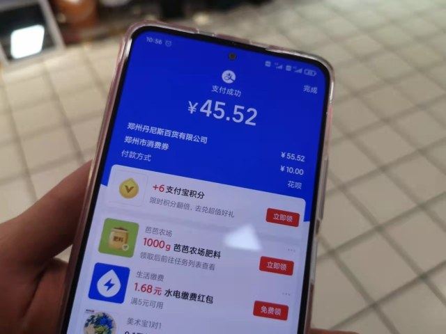 上午十点,记者在二七商圈看到,许多顾客正手持消费券进行购物、结算。市民李先生买了一些生活用品花费55.52元,支付时消费券自动抵扣10元,“特别实用,50元可以减免10元。我和我媳妇都领到了,相当于省了我100块钱,出来吃饭或者买东西都能用,挺划算的。”