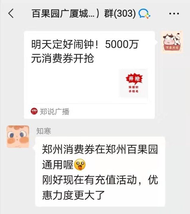 各大商家也积极配合,通过微信群、收银提醒等多种方式告知、引导市民可以使用消费券。丹尼斯人民路店店长表示,这两天很多市民询问能不能用消费券,收银人员都会提前了解消费券使用规则,会自觉引导顾客核销用券。