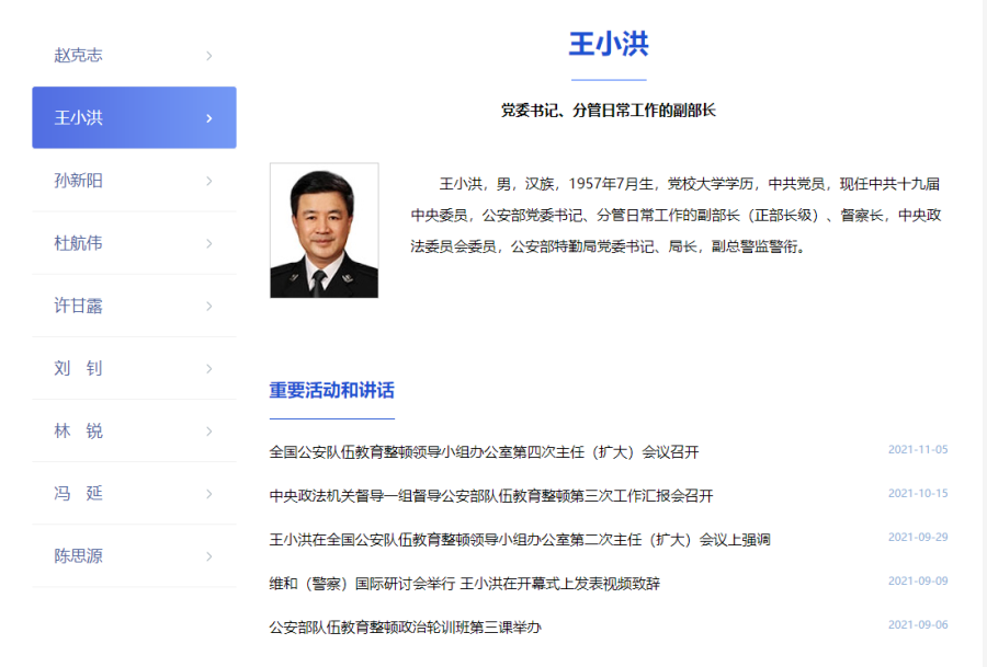 据公安部官网领导信息公布显示,公安部党委书记王小洪已任中央政法委委员。