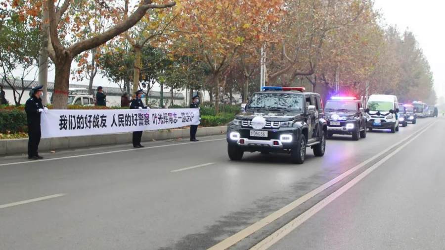 记者从平安汝州微信公众号获悉,2021年11月20日上午,因公壮烈牺牲民警叶光辉同志遗体告别仪式在河南省平顶山汝州市举行。叶光辉同志生前亲友、战友和群众共600余人前来吊唁,送英雄最后一程。