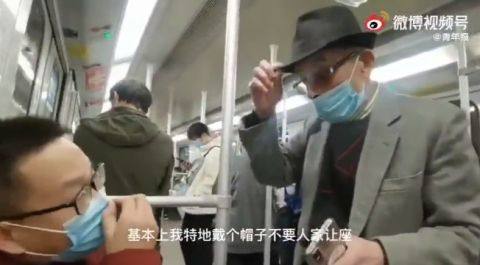大爷说,他特地戴了顶帽子就是为了不要人家让座。