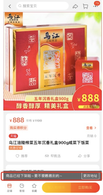 关于下架的原因,乌江榨菜淘宝官方旗舰店客服告诉红星资本局:“现在卖完了”,并表示,暂时未接到通知是否会再上架。