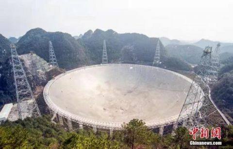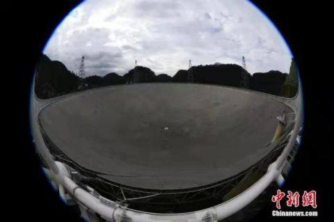 资料图:2021年2月7日拍摄的500米口径球面射电望远镜(FAST)。中新社记者 瞿宏伦 摄