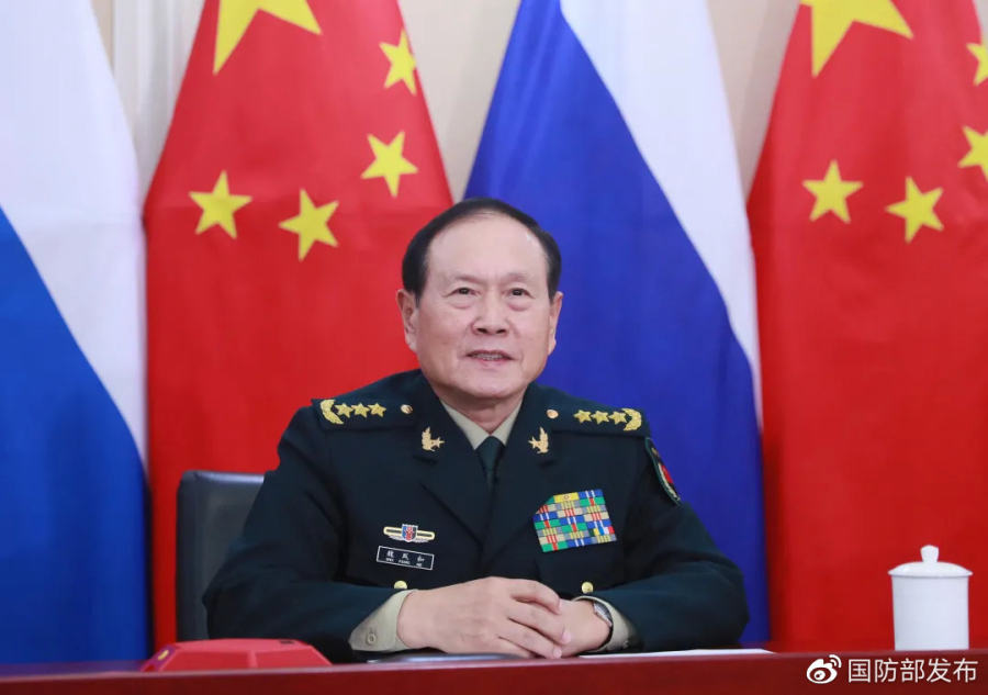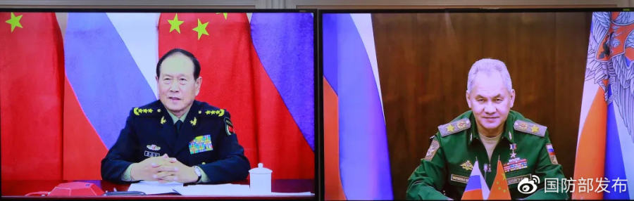 11月23日,中国国务委员兼国防部长魏凤和与俄罗斯国防部长绍伊古举行视频通话。