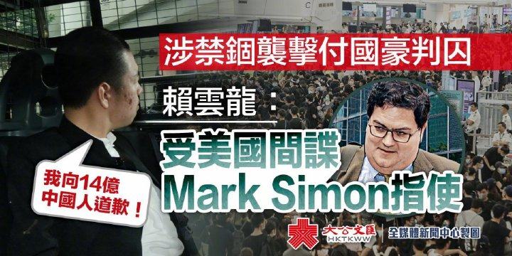 2019年8月,内地记者付国豪在香港机场遭暴徒非法拘禁袭击。早前法官裁定涉案人毕慧芬与赖云龙暴动及袭击罪成,分别判囚4年3个月、5年3个月。两人原本不服定罪及刑期,向高院提出了上诉。25日,上诉庭开庭,赖云龙撤销上诉申请,并在法庭上称,2019年的风波及机场暴动事件均是“美国间谍”马克·西蒙(Mark Simon)指使的,“我冤枉了付国豪,我向14亿中国人道歉!”(gcy 来源:海外网)