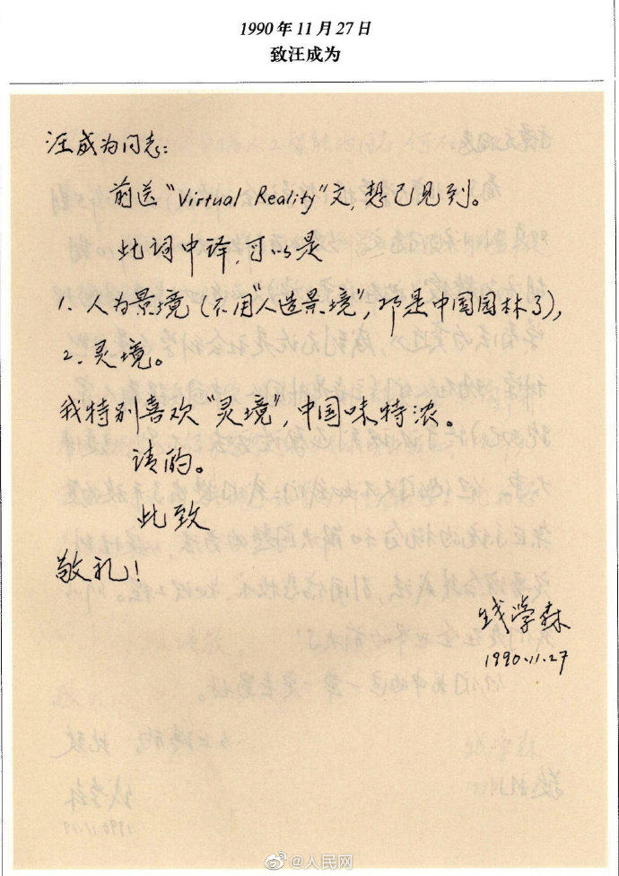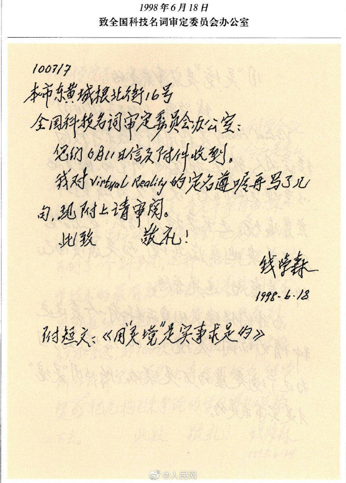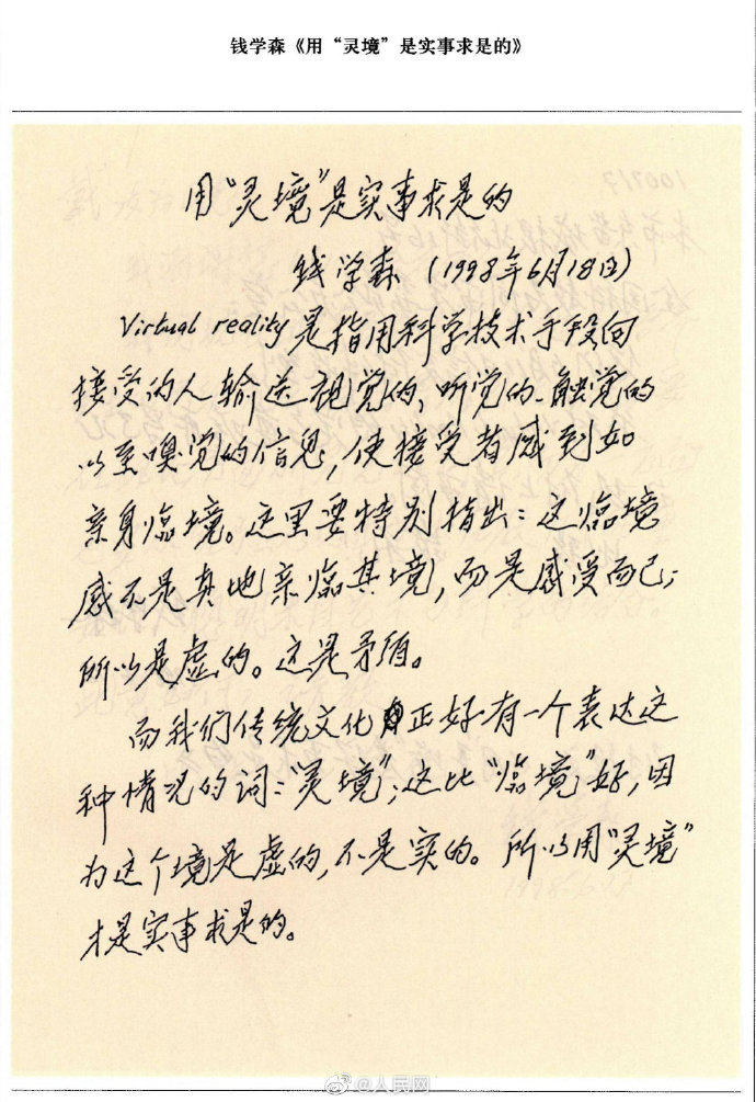 钱学森30年前给虚拟现实取名灵境,网友:比元宇宙好听