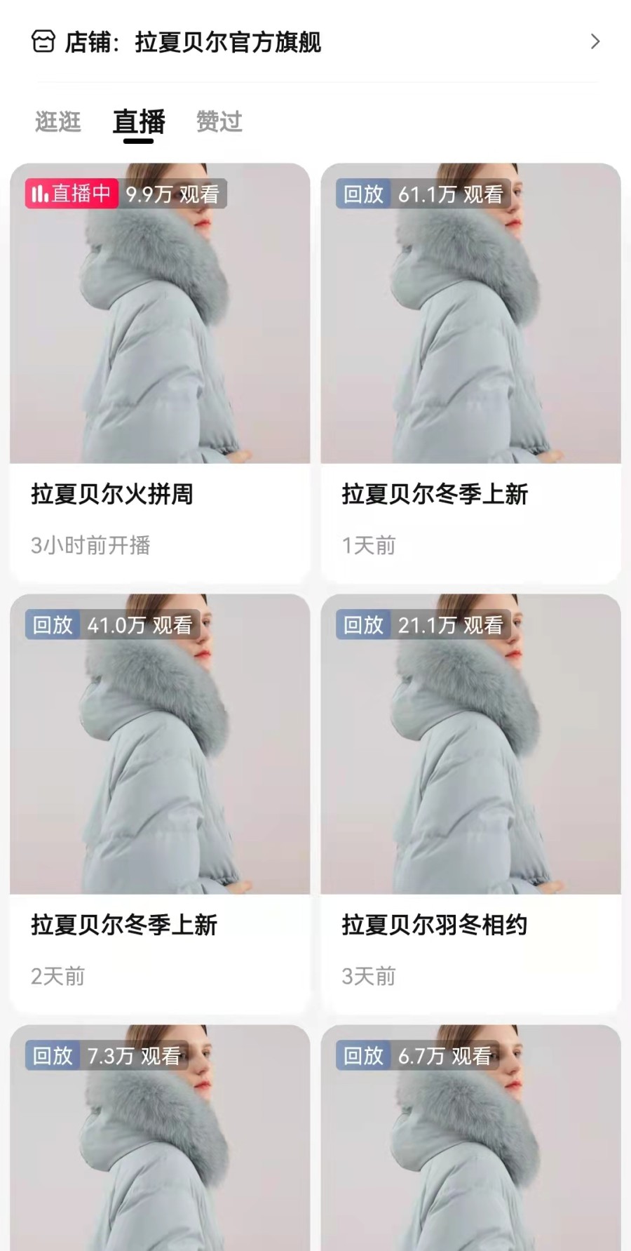 拉夏贝尔天猫官方旗舰店直播间截图。