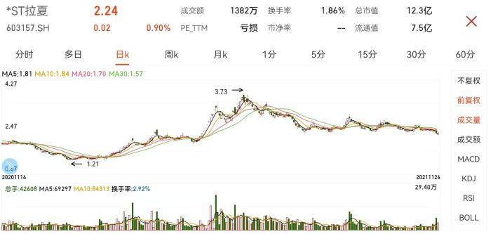 如今,*ST拉夏的股价从刚上市时的31.42元的高点下滑至11月26日的2.24元,今年1月甚至触及1.21元。