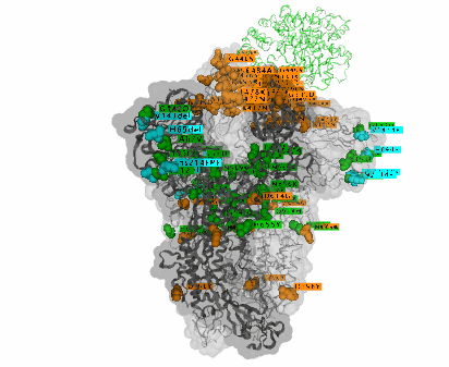 △德尔塔毒株与奥密克戎毒株刺突蛋白突变对比图(图片来自罗马儿童医院)
