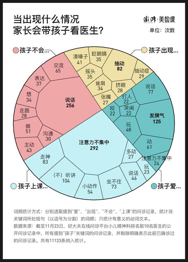 但面对棘手且隐秘的精神健康问题,家长们究竟处于怎样的状态之中,是否也如叶欣欣爸爸一般,直至面对女儿残破的双臂依旧感到茫然?我们分析了11133条线上问诊数据,试图追踪这个问题。