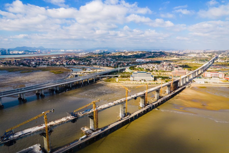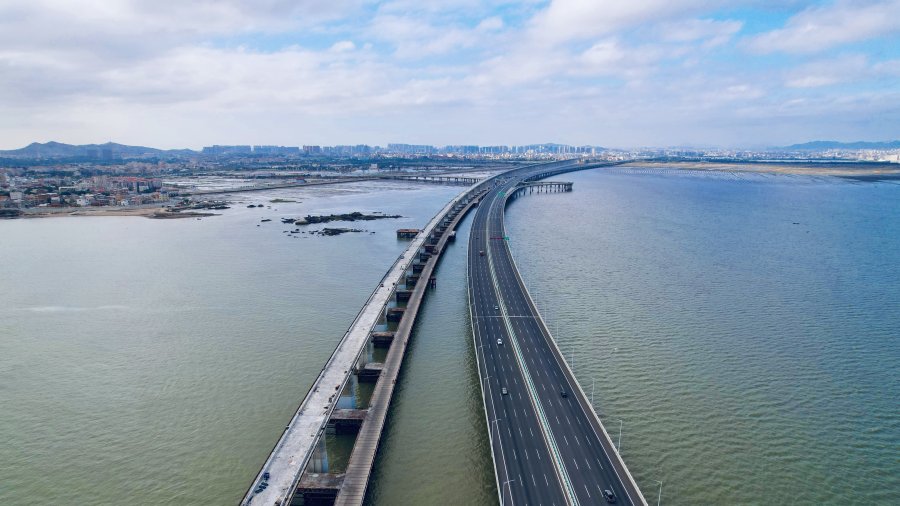 泉州湾跨海大桥引桥(左)。余杉芳 摄