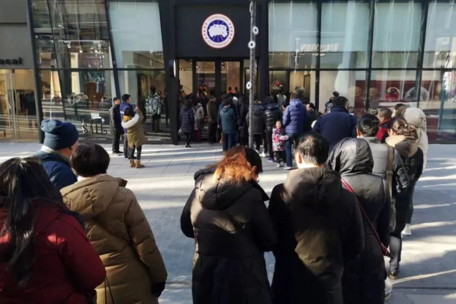 2018年12月底,加拿大鹅北京三里屯店开业,消费者一度排队进店选购。根据时尚商业快讯报道,今年年初,上海加拿大鹅旗舰店出现排队抢购情况,进店需排队1个小时至3个小时不等,售价近万元的羽绒服几乎卖断货。